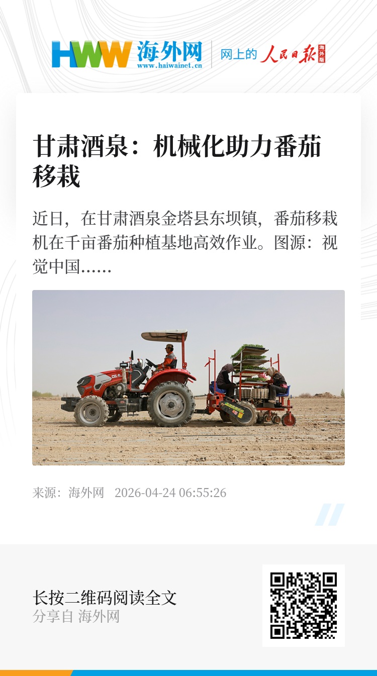 32947945,.甘肃酒泉:机械化助力番茄移栽,.2026-04-24 06:55:26,.204441,.张荣耀、任雨诺