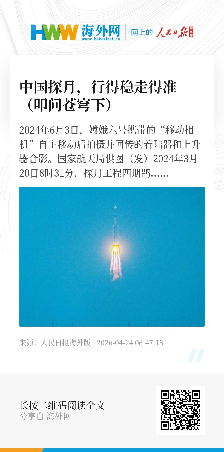 2024年6月4日,嫦娥六号完成月背自动采样与封装,上升器从月背起飞。