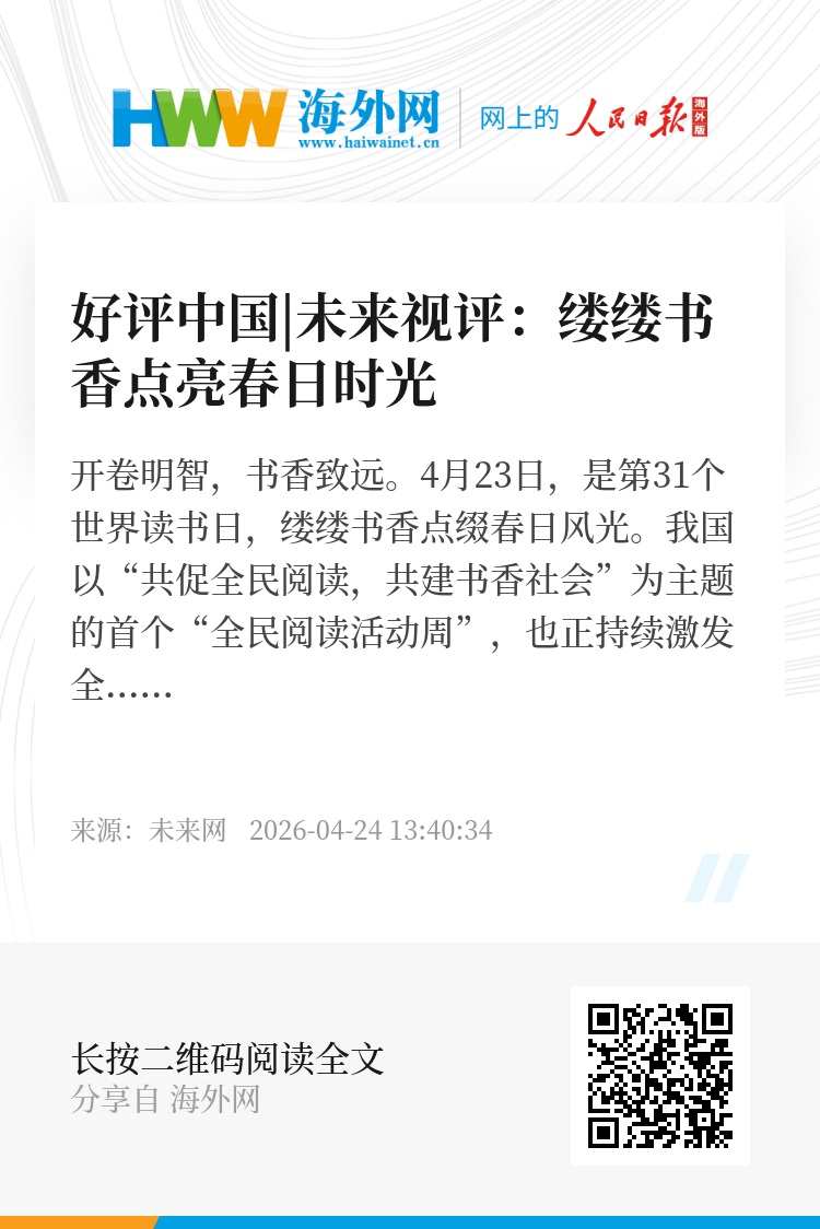 开卷明智,书香致远。4月23日,是第31个世界读书日,缕缕书香点缀春日风光。我国以“共促全民阅读,共建书香社会”为主题的首个“全民阅读活动周”,也正持续激发全民阅读的积极性和主动性。