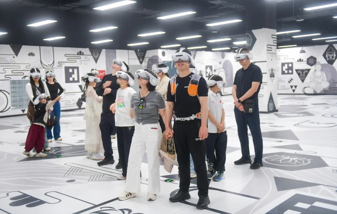 4月5日,游客在河南洛阳市神都十三坊“梦神都·唐潮秘境”XR幻境剧场内体验游玩。新华社发(张怡熙 摄)