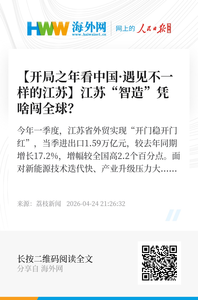 一路解题,一路探索。无锡先导智能的发展之路,是政企协同,不断破解技术、产业、出海难题的攻坚之路,更是江苏“智造”向新、向高、向全球的探索之路:徐工集团以5G与数字孪生打造领航级智能工厂、实现海外订单响应时间大幅压缩;惠生重工突破高端海工装备核心技术、助力深海能源开发……一大批江苏“智造”企业正沿着数智化、绿色化、国际化的方向,培育壮大新质生产力,做强产业优势,为全省经济高质量发展注入强劲动能。