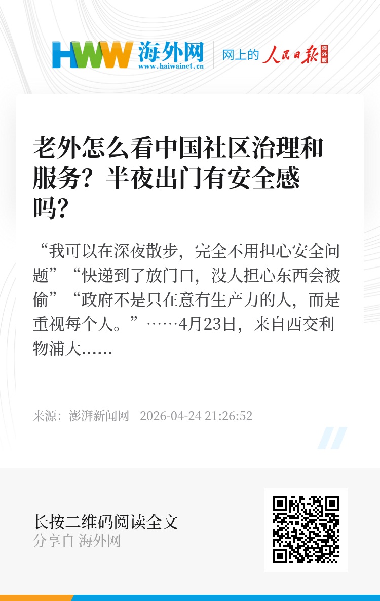 “中国很安全,已经成为在华外国人的共识。无论何时,任何人走进城市的任意街区,无论是居住、旅行还是访问,都能感到安全。”罗仁舟说,这是良好生活的重要基础。