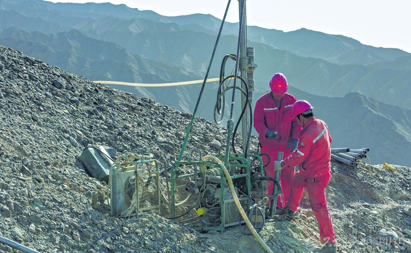 4月20日,工人在吐西三维地震采集项目现场调试钻机。