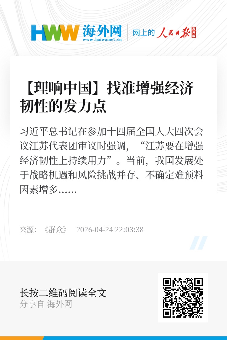 习近平总书记在参加十四届全国人大四次会议江苏代表团审议时强调,“江苏要在增强经济韧性上持续用力”。当前,我国发展处于战略机遇和风险挑战并存、不确定难预料因素增多的时期。江苏作为经济大省,必须把增强经济韧性摆在更加突出的位置,不断提升经济竞争力、抗风险能力和可持续发展能力。