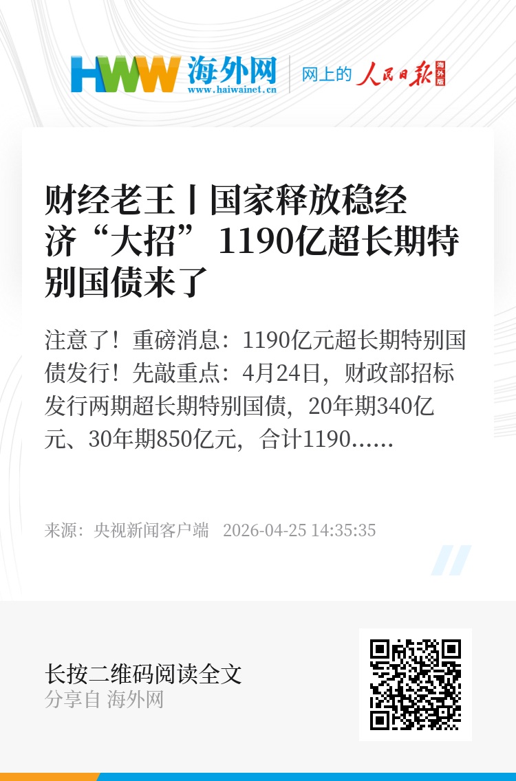 注意了!重磅消息:1190亿元超长期特别国债发行!