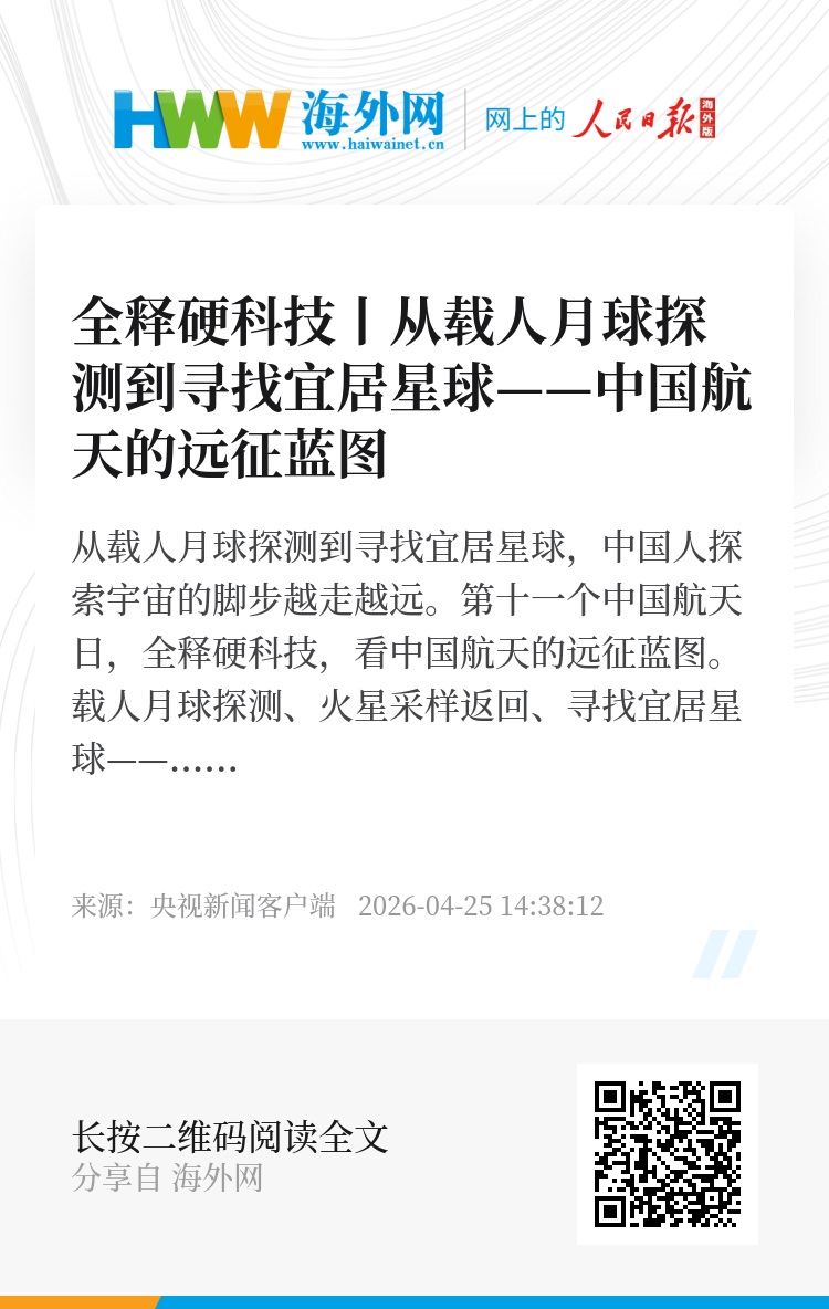 宇宙很大,但中国航天探索的脚步从未停歇。航天日,不只属于航天人,也属于我们每个仰望星空的人。(总台央视记者 帅俊全 褚尔嘉 吴昊 胡启晨)