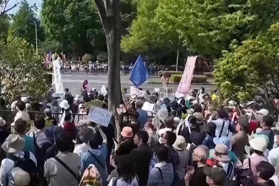近期,日本政府推动修改和平宪法、解禁武器出口等做法引发国内不满。日本民众在东京等多地举行抗议集会。