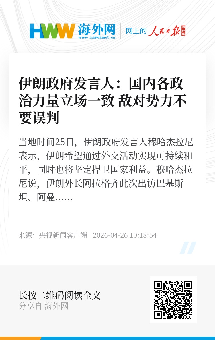 当地时间25日,伊朗政府发言人穆哈杰拉尼表示,伊朗希望通过外交活动实现可持续和平,同时也将坚定捍卫国家利益。