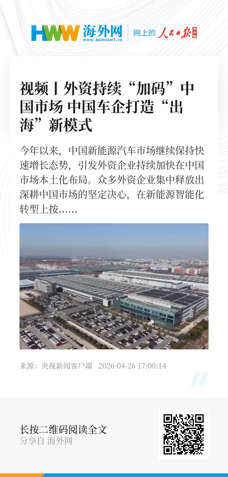 记者注意到,不少外资车企正在中国深化与本土产业链的合作,从零部件配套供应升级为技术联合创新。与此同时,也将中国研发成果反哺全球,形成了“中国创新、全球共享”的新发展格局。