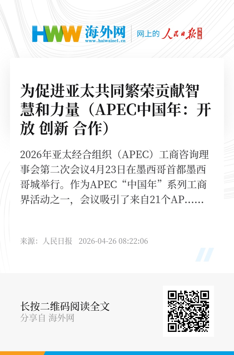 2026年亚太经合组织(APEC)工商咨询理事会第二次会议4月23日在墨西哥首都墨西哥城举行。作为APEC“中国年”系列工商界活动之一,会议吸引了来自21个APEC经济体的高官、工商咨询理事会代表和候任代表、专家等200余人参加。