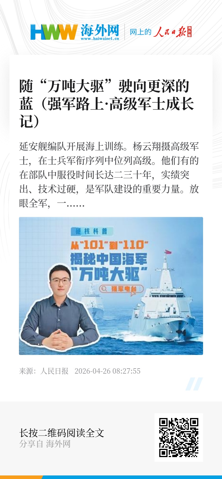 本期配发“强军电台”栏目视频,敬请登录人民日报微信视频号、人民日报客户端观看。