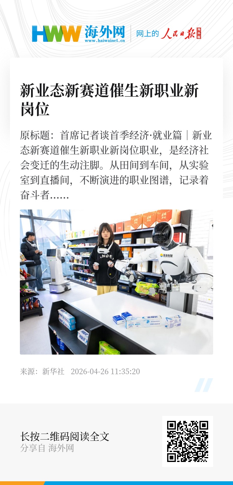 随着科技创新和产业升级的持续演进,新业态新赛道开辟的新职业新岗位,远不止是就业名录上登记的若干个新名词。它们是中国经济结构优化升级的鲜活注脚,是技术进步惠及亿万民众的生动体现,更是无数个体实现自我价值、追逐时代梦想的全新舞台。