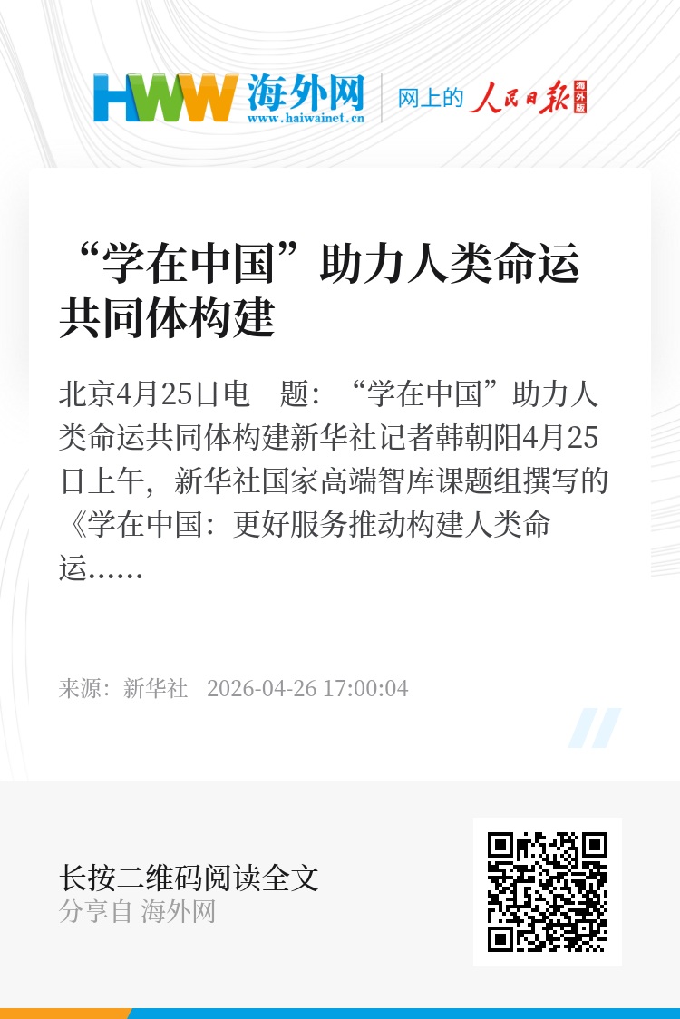 新华社北京4月25日电 题:“学在中国”助力人类命运共同体构建