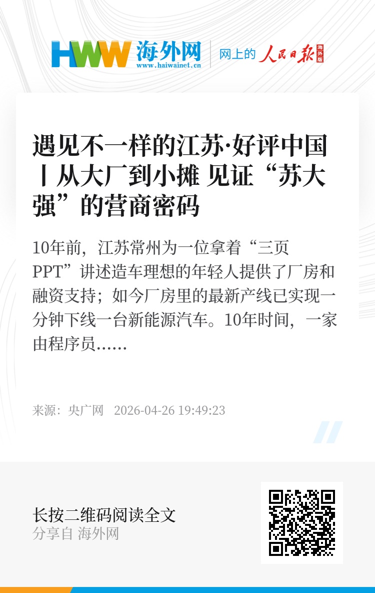 从大厂到小摊,这三个故事道出了“苏大强”的营商密码:好的营商环境没有统一条款,但有共通的精神内核:尊重每一份创业梦想的善意诚意、面对每一类市场主体的一视同仁、依法守护每一分烟火的城市温度与治理智慧。企业无论大小,都是经济的毛细血管,支撑着就业、拉动着消费,它们的成长与活力,正是整个市场生机的源头,也是经济高质量发展的根基。