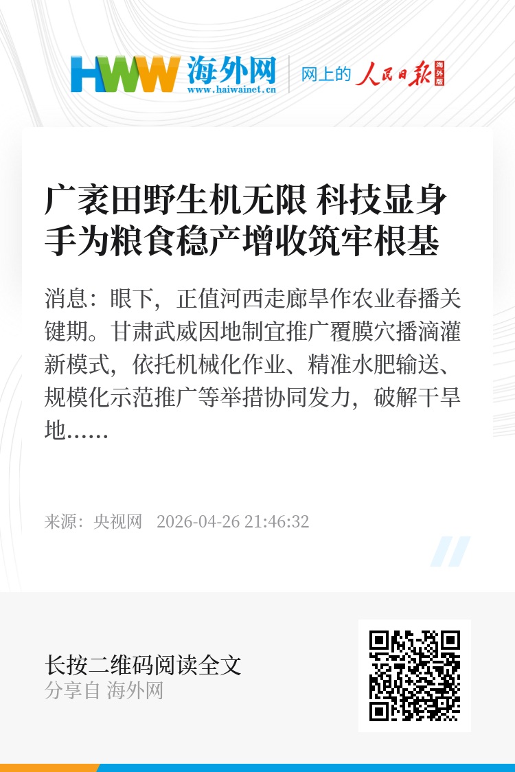 据了解,2026年,呼伦贝尔市粮食播种总面积2437万亩。除重点在100万亩旱作耕地落地水肥一体化技术外,当地还同步加快农作物优良新品种、现代农业新装备的普及推广,全力确保全年粮食产量稳定保持在133亿斤以上。