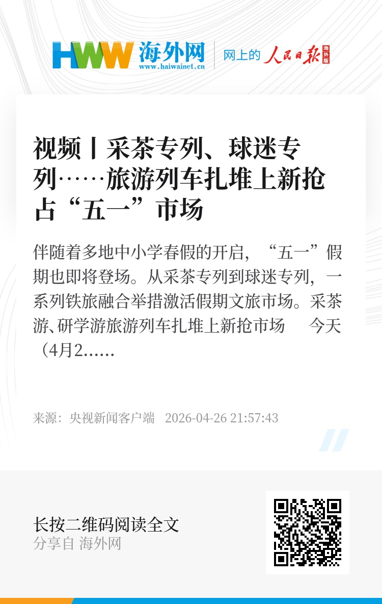 伴随着多地中小学春假的开启,“五一”假期也即将登场。从采茶专列到球迷专列,一系列铁旅融合举措激活假期文旅市场。