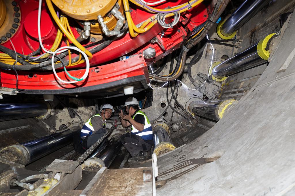 此外,项目还应用了“双液灌浆”等世界前沿技术,将水泥浆与水玻璃注入管片与岩壁之间的缝隙,给隧洞“打上加固胶”,大幅提升隧洞牢固性与施工效率。