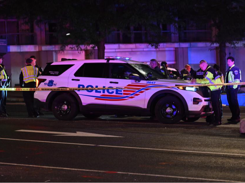 4月25日,警察在举行白宫记者协会晚宴的美国华盛顿希尔顿酒店附近警戒。新华社记者李睿摄