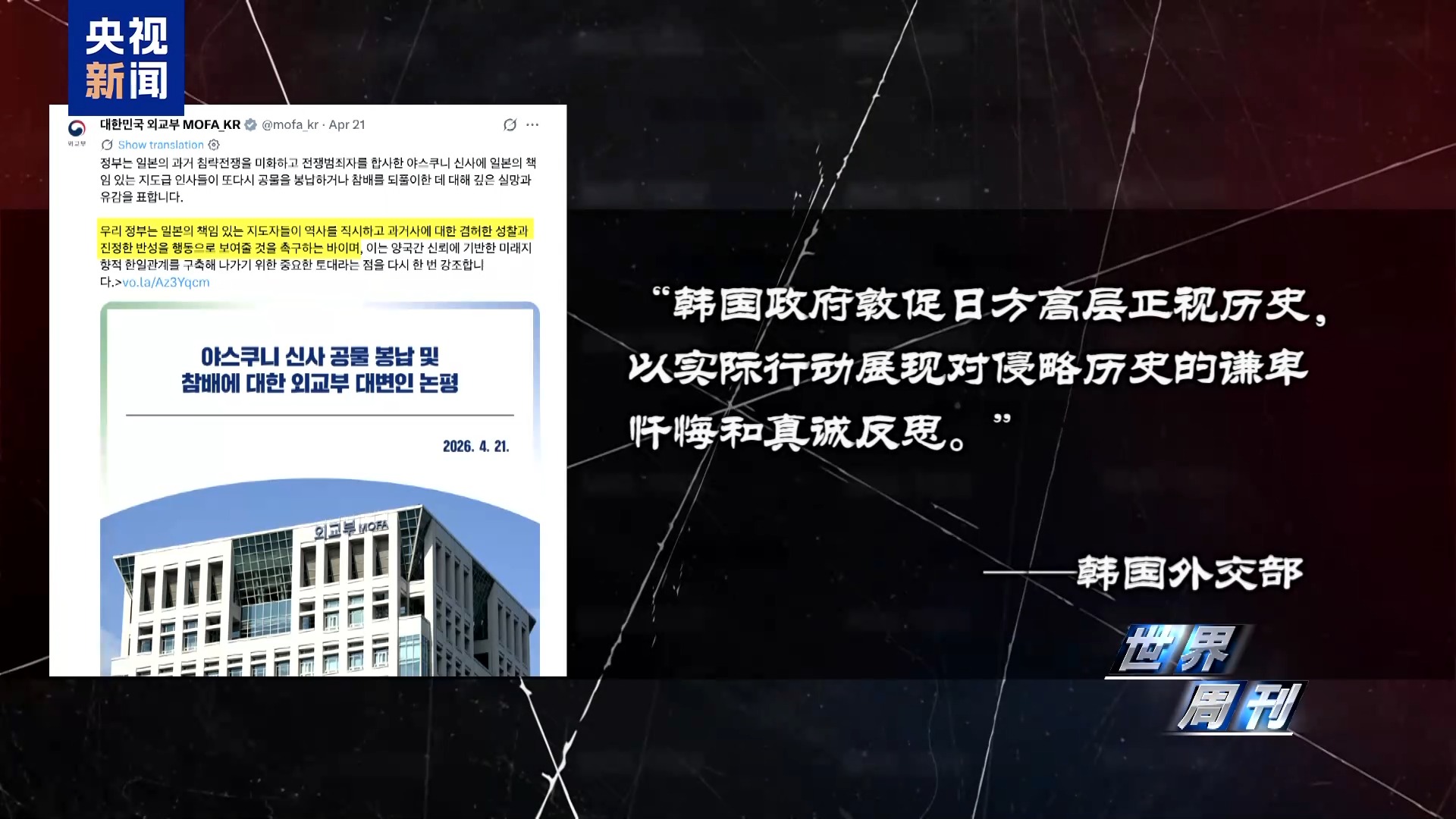 韩国政府敦促日方高层正视历史,以实际行动展现对侵略历史的谦卑忏悔和真诚反思。
