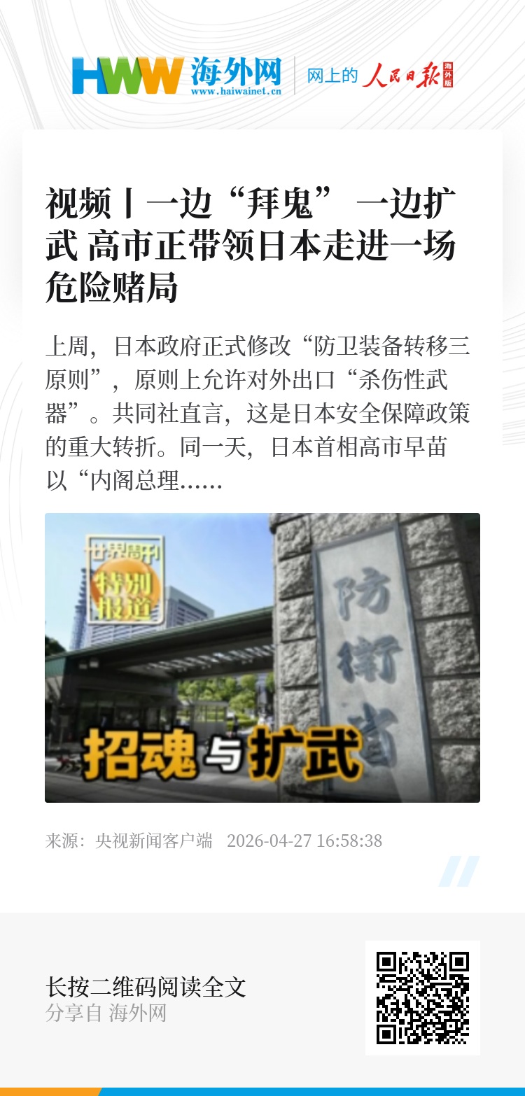 日本《东京新闻》对此发出警告,一个国家若不能正确对待历史,也难以把握未来,高市正带领日本走进一场危险赌局,也将亚洲拖入安全风险加剧的阴影中。