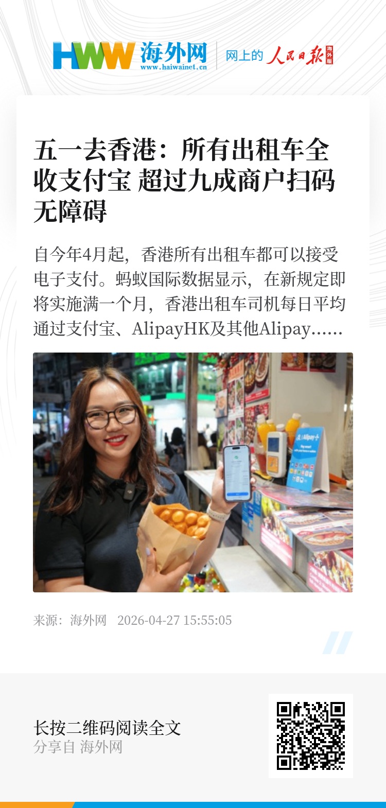 自今年4月起,香港所有出租车都可以接受支付宝、AlipayHK 及其它Alipay+境外钱包付款。