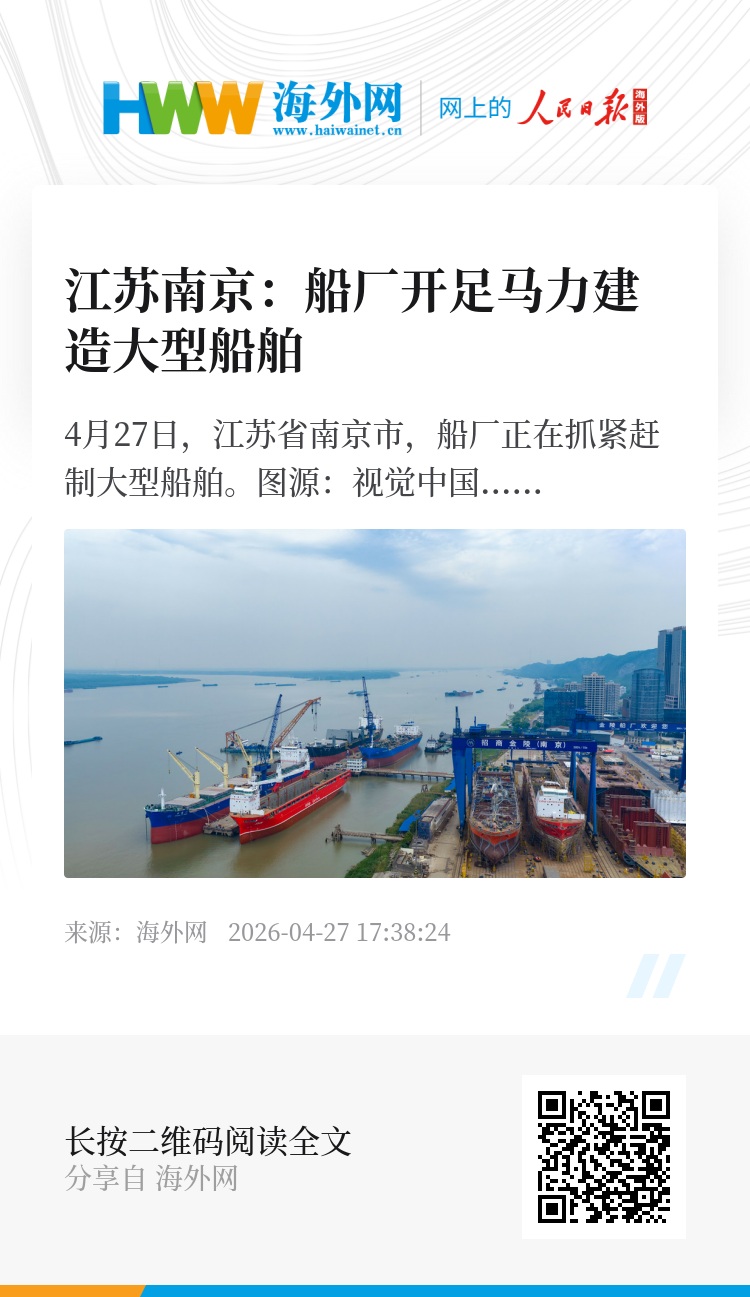 32948721,.江苏南京:船厂开足马力建造大型船舶,.2026-04-27 17:38:24,.204589,.黄之安、侯兴川