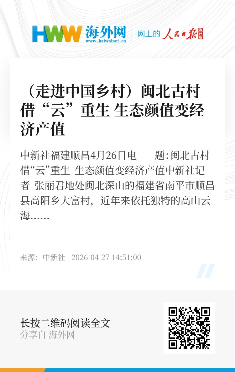 中新社福建顺昌4月26日电 题:闽北古村借“云”重生 生态颜值变经济产值
