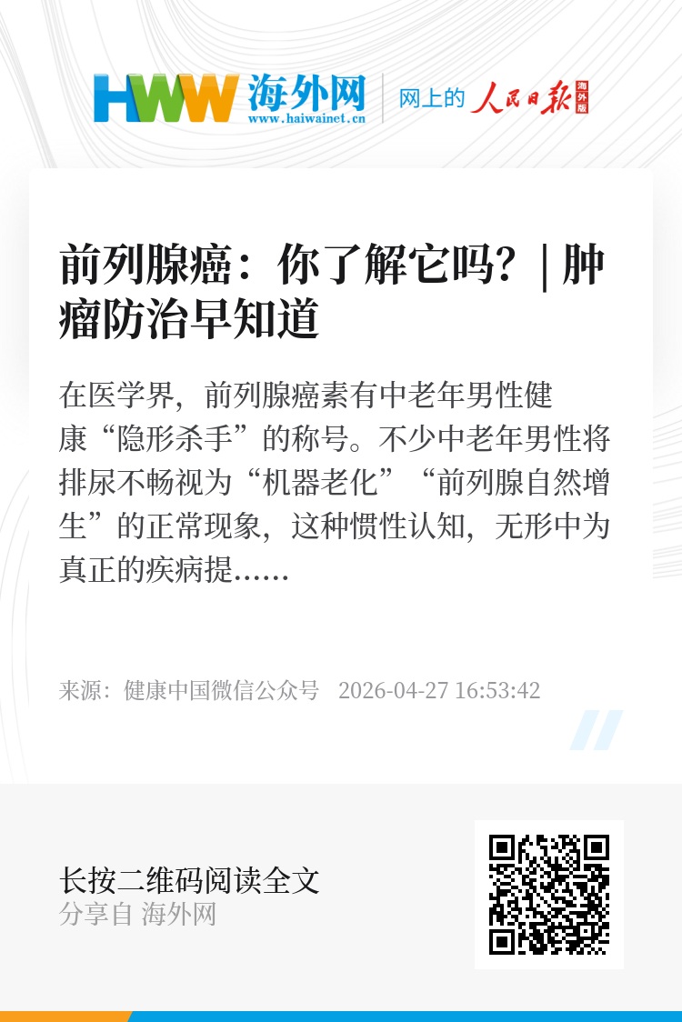 在医学界,前列腺癌素有中老年男性健康“隐形杀手”的称号。不少中老年男性将排尿不畅视为“机器老化”“前列腺自然增生”的正常现象,这种惯性认知,无形中为真正的疾病提供了掩护。
