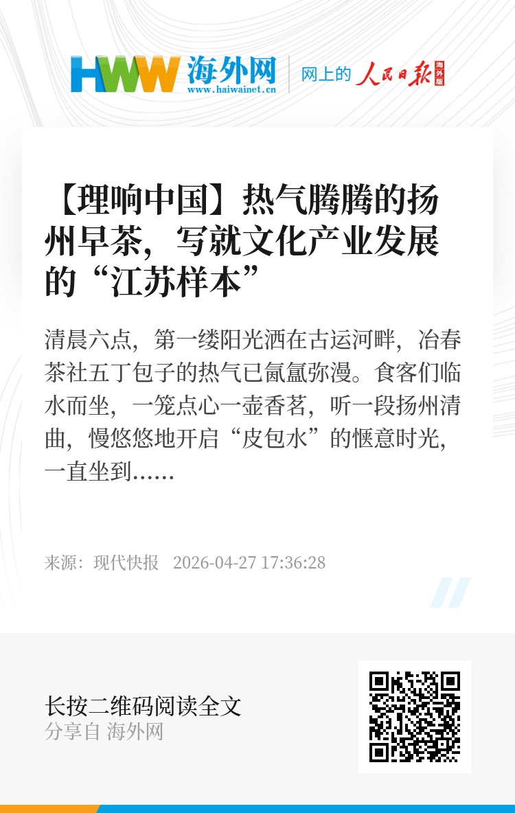 一口早茶,半部扬州史。文化的传承发展离不开创新,在产业化进程中,难的不是现代化产品包装,而是守住那份烟火气。冶春推出“早茶+晚酒+午咖啡”全时段经营模式,“早茶+观光”双层巴士串联瘦西湖、宋夹城等景点,打造沉浸式旅游体验……这些创新并非对传统的背离,而是让非遗在消费场景中“活”起来,以契合现代生活的新颖方式走进大众生活,实现文化传承与产业发展的双赢。
