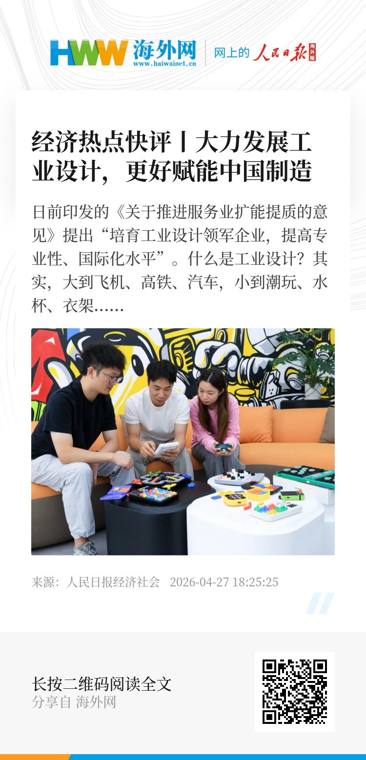 在这样的背景下,有必要支持、培育一批工业设计领军企业,支撑中国制造由大到强。期待我国不断培育出更多的工业设计领军企业,以专业化、国际化的设计能力托举中国制造。(王云杉)