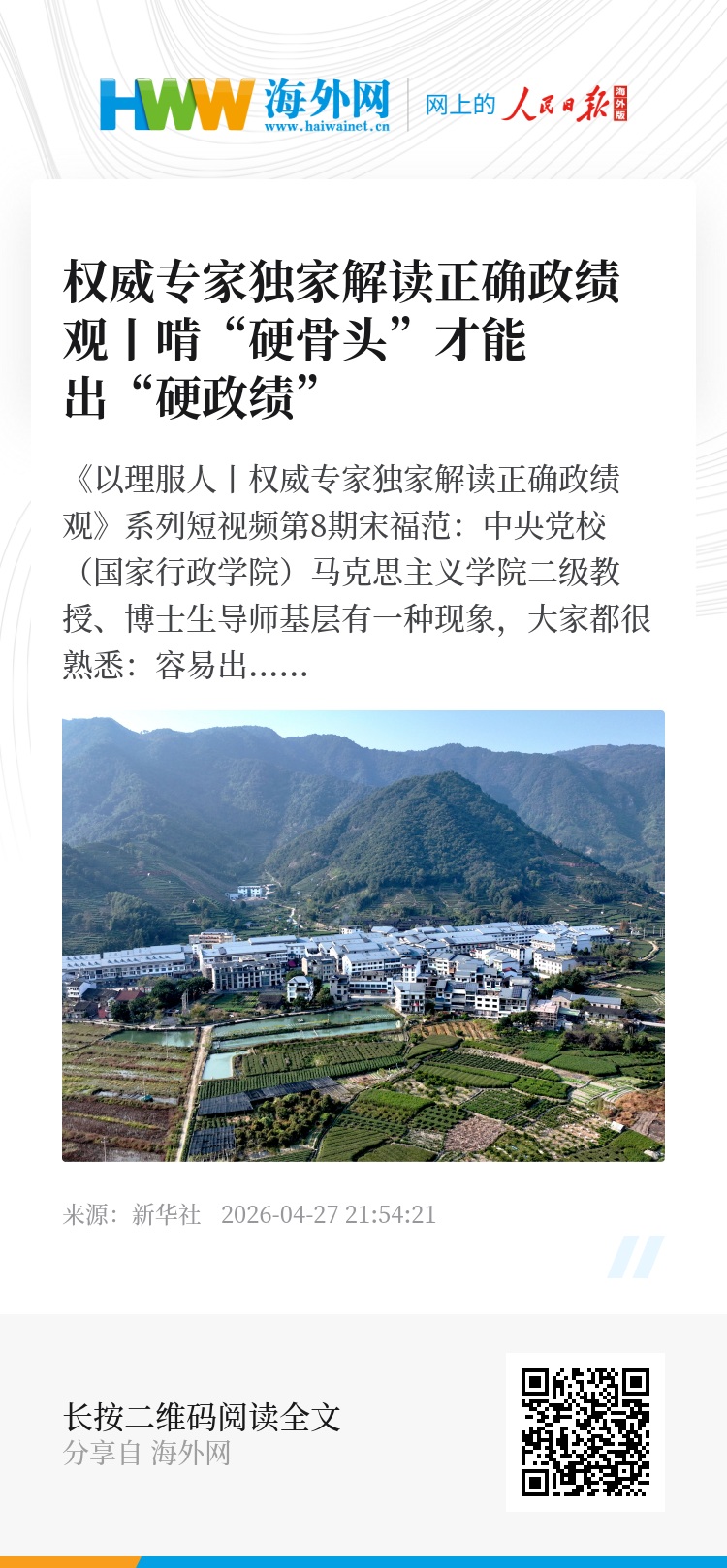 为什么有的干部不愿啃硬骨头?表面上看,是怕麻烦、怕担责;从根子上看,还是政绩观不够正。因为如果把政绩理解成容易见效的成绩,当然更愿意挑软的做;可如果把政绩理解成解决问题、推动发展的成效,就会主动去碰那些硬任务。