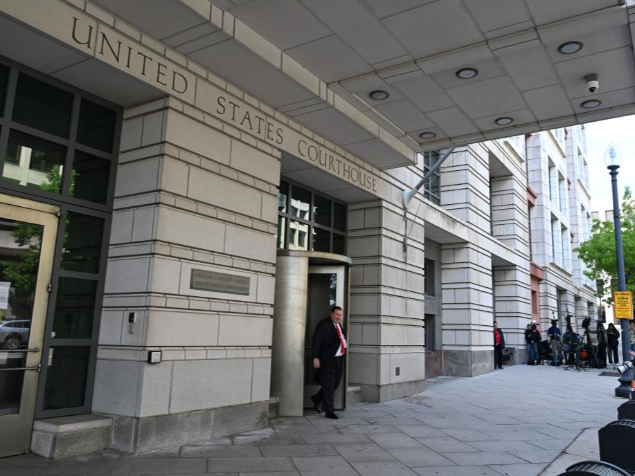 4月27日,在美国首都华盛顿,安保人员在美国哥伦比亚特区联邦地区法院门口警戒。新华社记者 李睿 摄