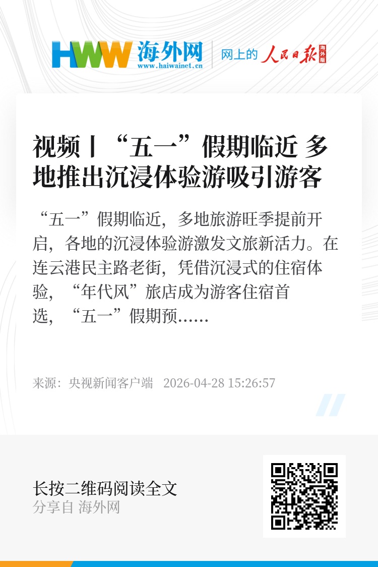 “五一”假期临近,多地旅游旺季提前开启,各地的沉浸体验游激发文旅新活力。