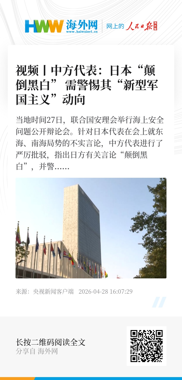 当地时间27日,联合国安理会举行海上安全问题公开辩论会。针对日本代表在会上就东海、南海局势的不实言论,中方代表进行了严厉批驳,指出日方有关言论“颠倒黑白”,并警告国际社会警惕日本“新型军国主义”动向。