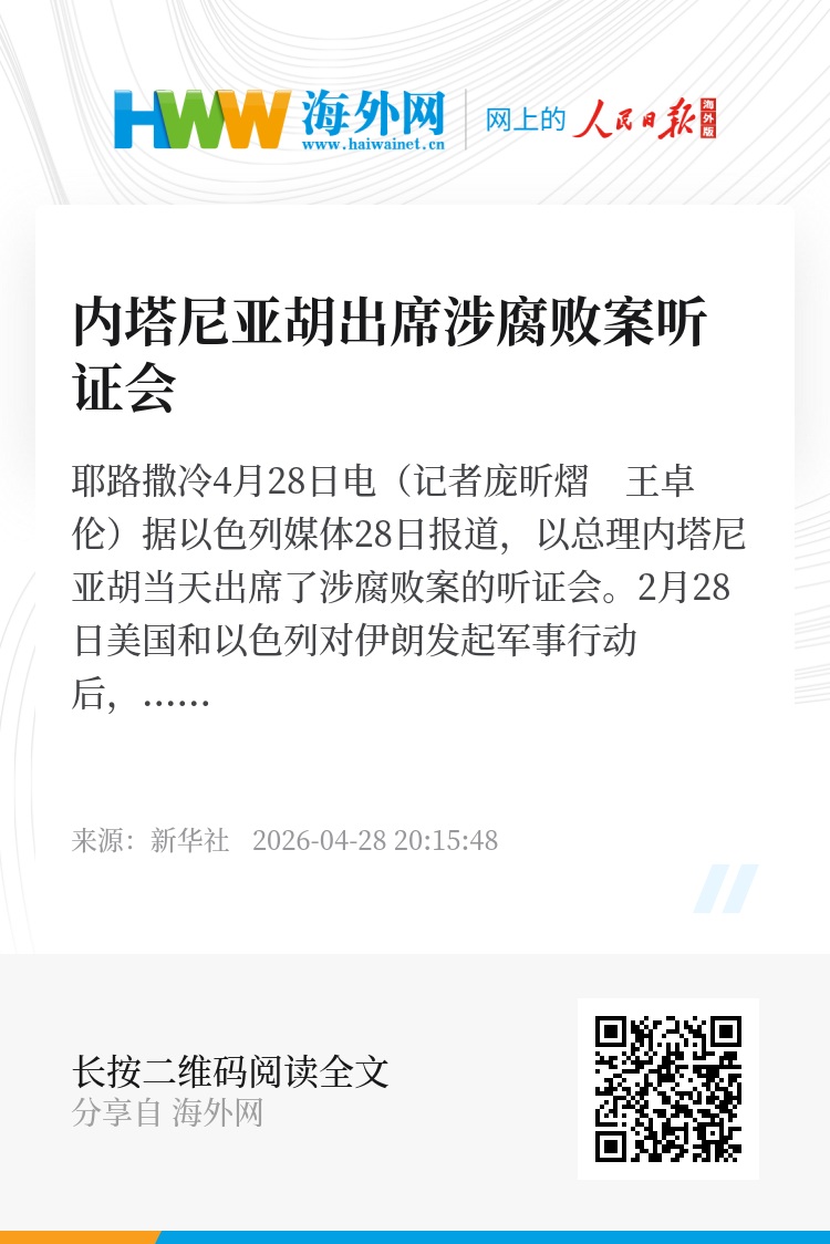 新华社耶路撒冷4月28日电(记者庞昕熠 王卓伦)据以色列媒体28日报道,以总理内塔尼亚胡当天出席了涉腐败案的听证会。