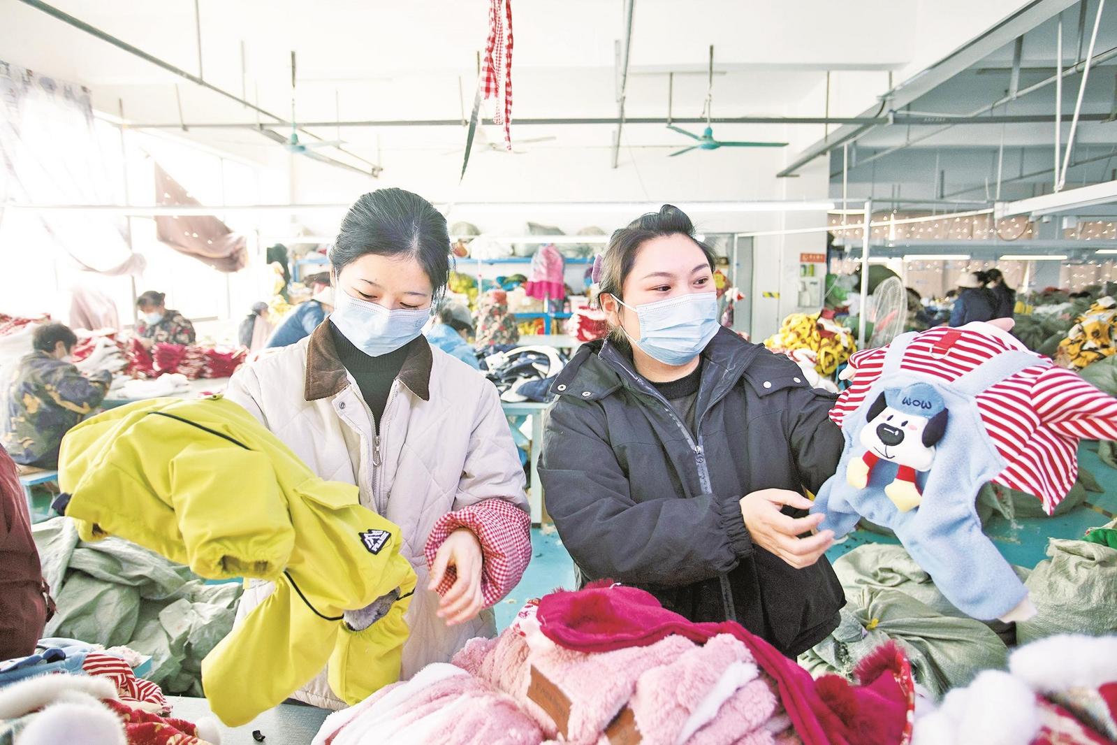 萧县威旺宠物用品有限公司宠物成衣车间生产的”阿猫阿狗”们新年套装。