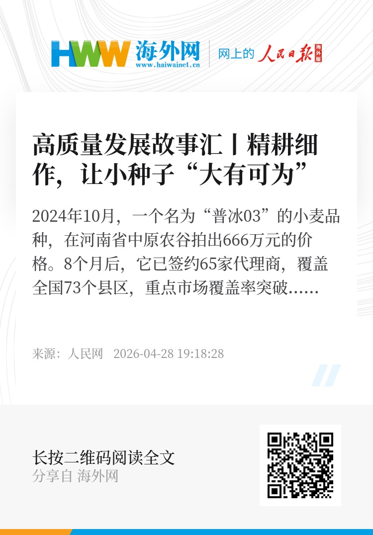 2024年10月,一个名为“普冰03”的小麦品种,在河南省中原农谷拍出666万元的价格。8个月后,它已签约65家代理商,覆盖全国73个县区,重点市场覆盖率突破90%。