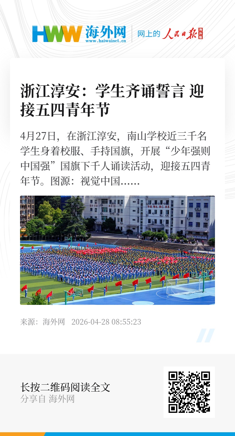 32948852,.浙江淳安:学生齐诵誓言 迎接五四青年节,.2026-04-28 08:55:23,.204555,.陈菲扬、卢思宇