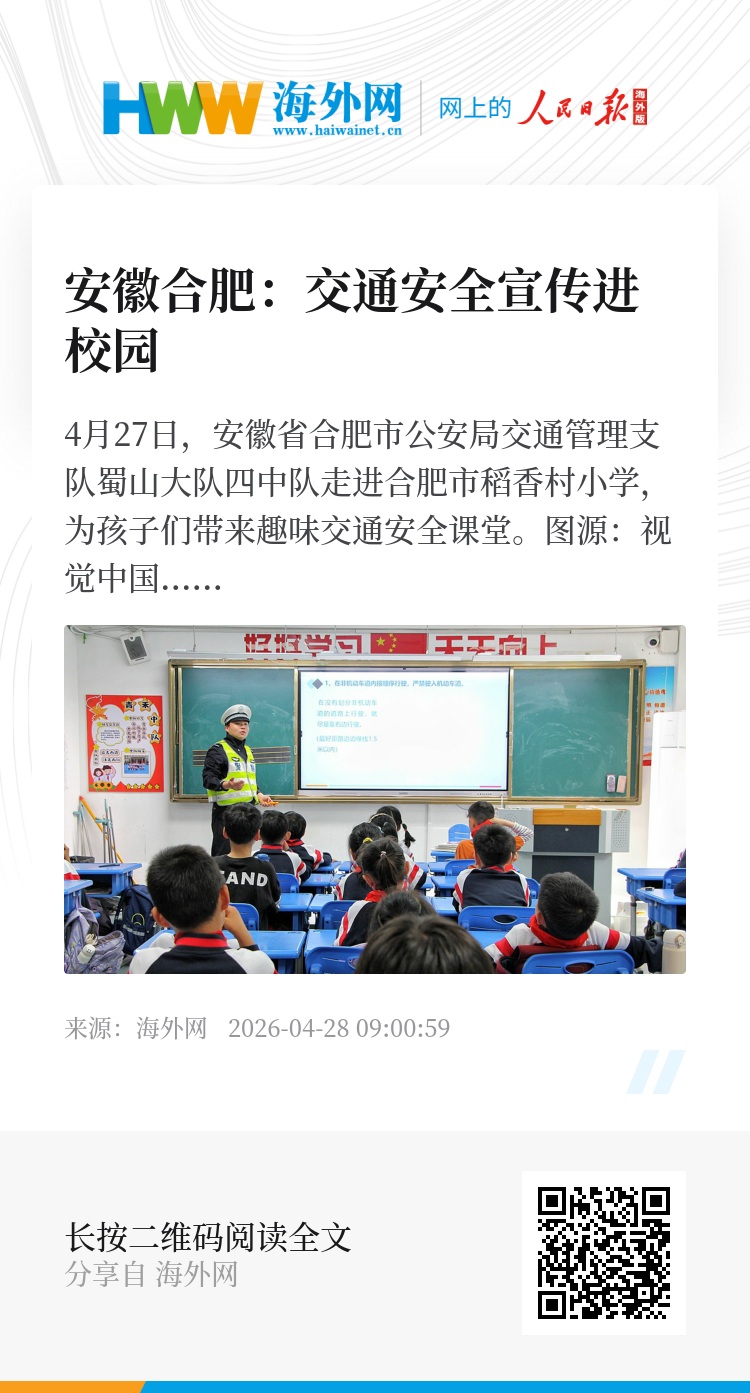 32948853,.安徽合肥:交通安全宣传进校园,.2026-04-28 09:00:59,.204555,.陈菲扬、卢思宇