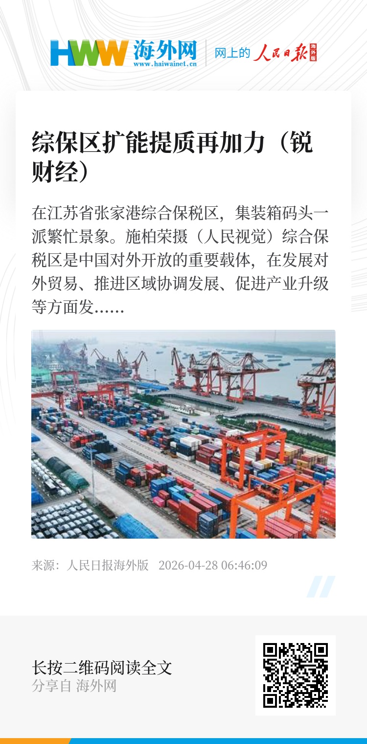 比如,保税维修是推动传统产业转型升级、提升产业链供应链发展能级的重要抓手。“2025年,全国综合保税区内企业实现维修进出口值3757.3亿元,同比增长3.2%。”潘城说。