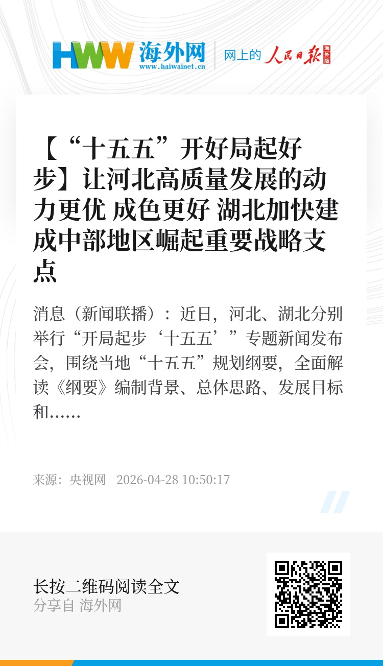 央视网消息(新闻联播):近日,河北、湖北分别举行“开局起步‘十五五’”专题新闻发布会,围绕当地“十五五”规划纲要,全面解读《纲要》编制背景、总体思路、发展目标和重点任务。