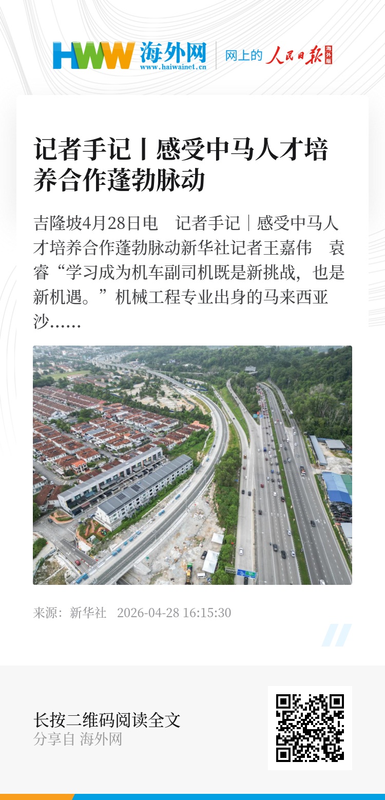 新华社吉隆坡4月28日电 记者手记|感受中马人才培养合作蓬勃脉动