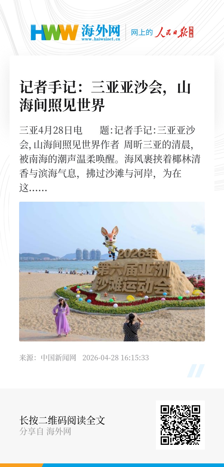 中新网三亚4月28日电 题:记者手记:三亚亚沙会,山海间照见世界