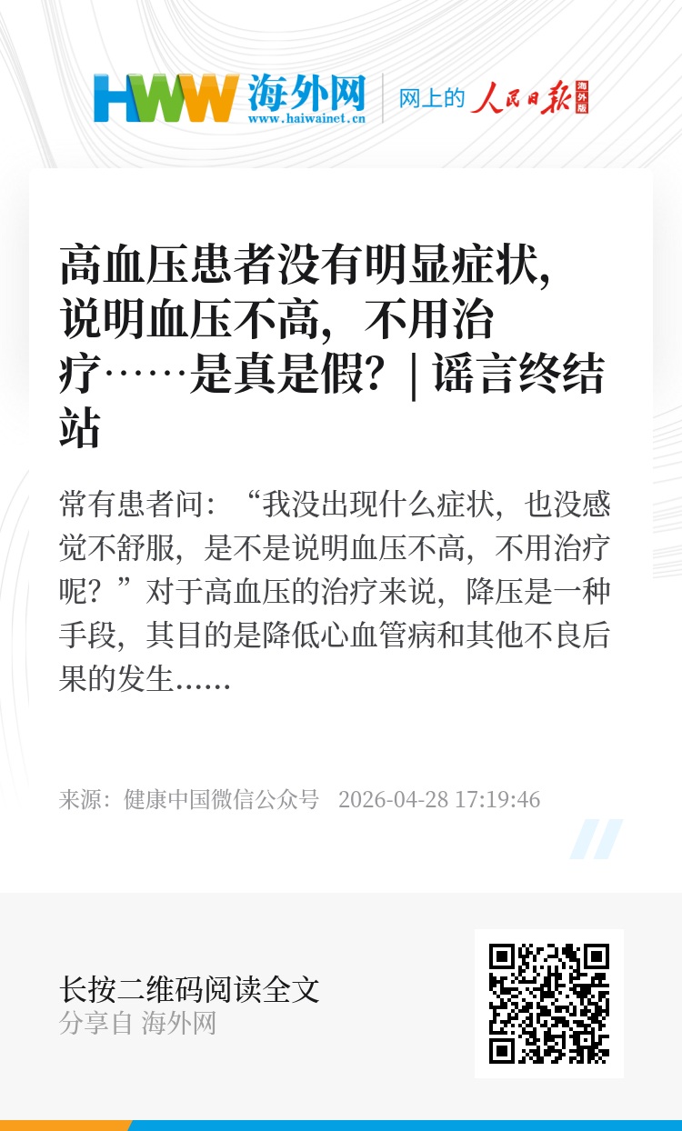 常有患者问:“我没出现什么症状,也没感觉不舒服,是不是说明血压不高,不用治疗呢?”