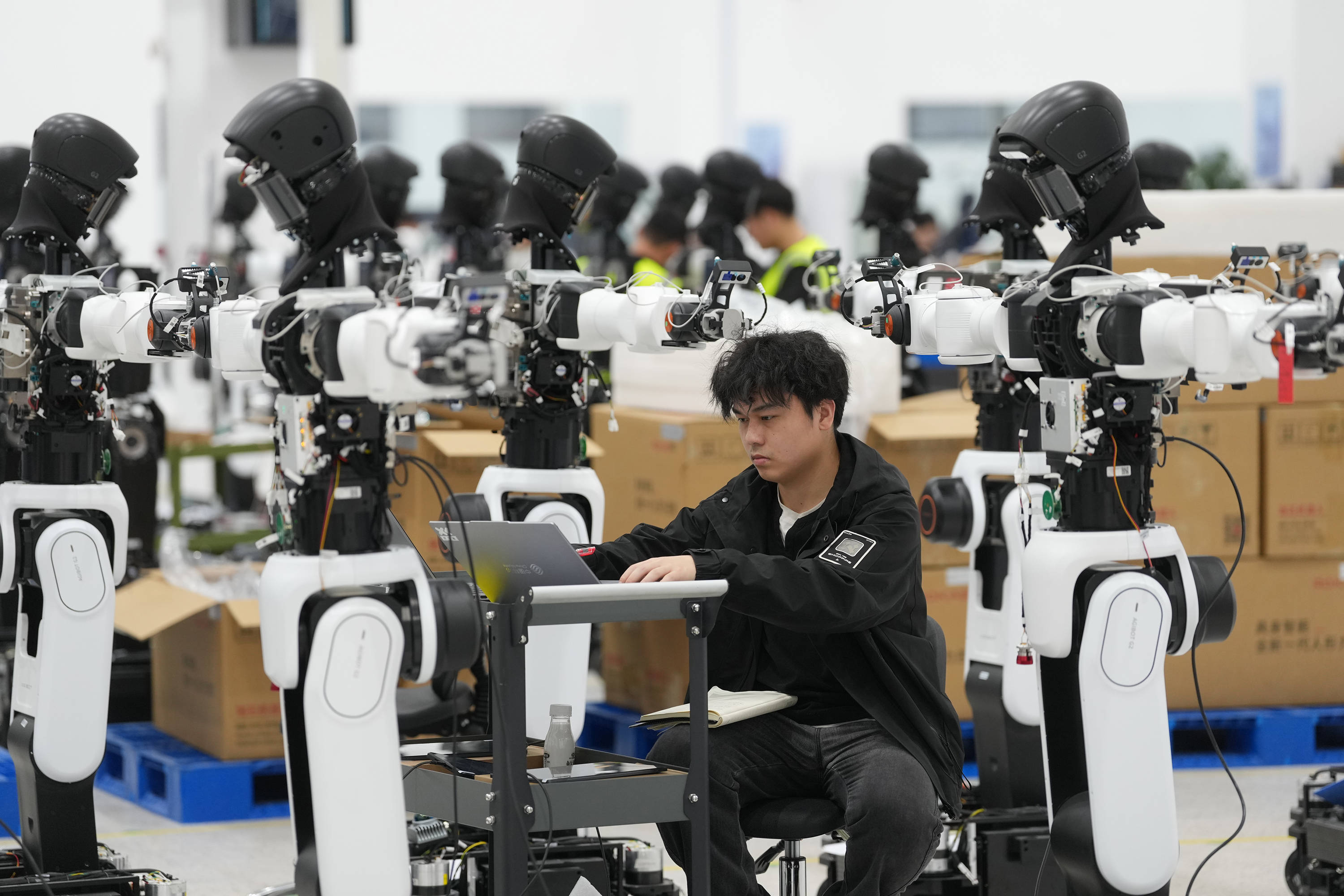 技术人员在宁波普智未来机器人有限公司组装人形机器人(3月24日摄)。新华社记者 黄宗治 摄