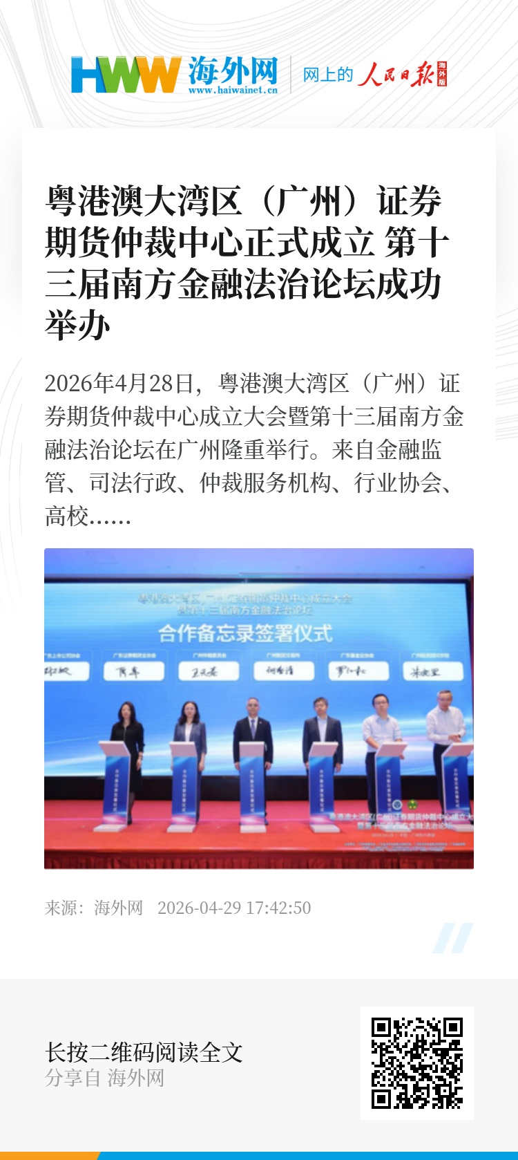粤港澳大湾区(广州)证券期货仲裁中心正式成立