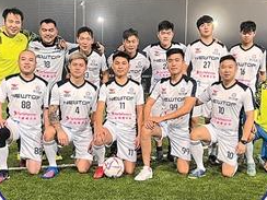 图为徐磊(前排右二)参加协会组织的足球活动。