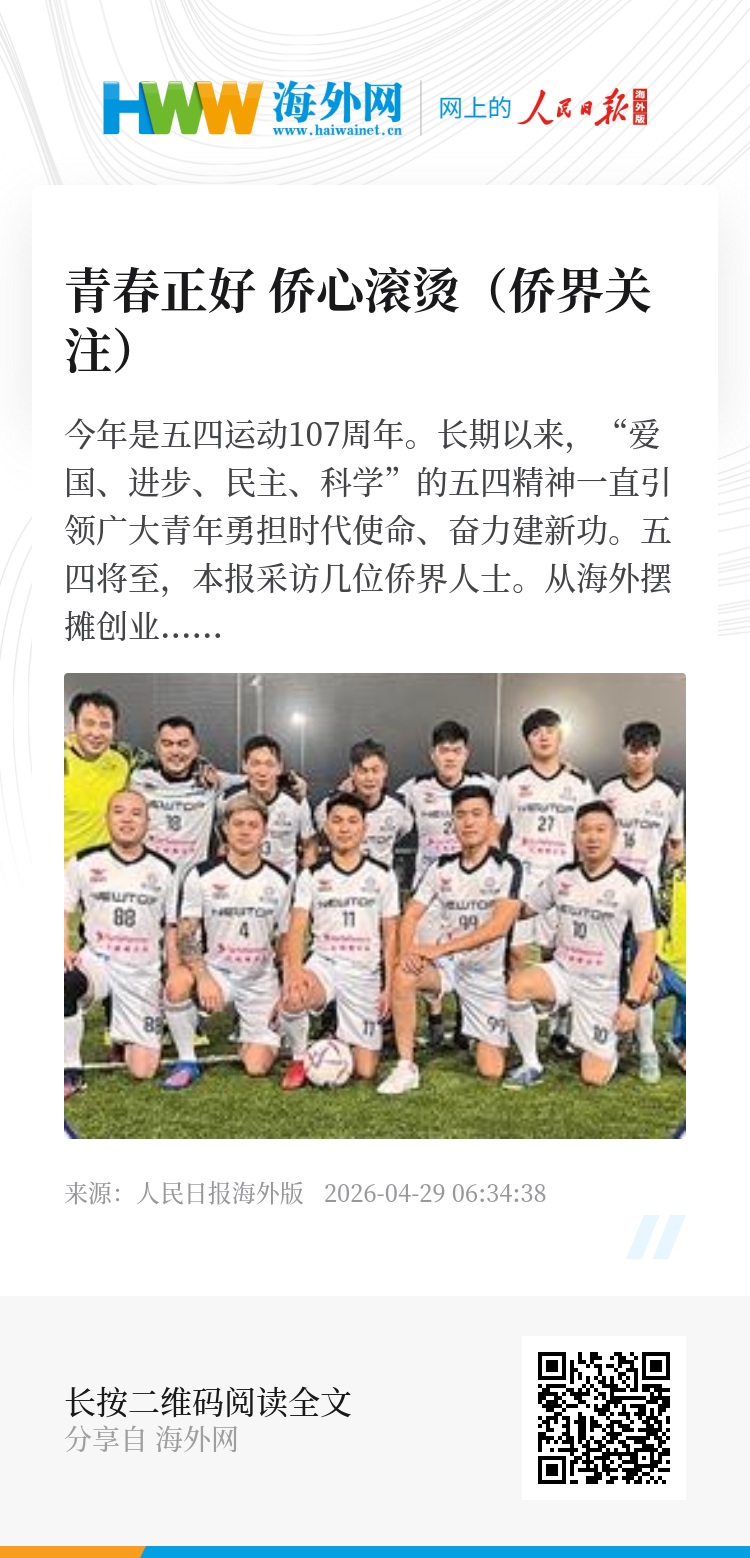 今年是五四运动107周年。长期以来,“爱国、进步、民主、科学”的五四精神一直引领广大青年勇担时代使命、奋力建新功。五四将至,本报采访几位侨界人士。从海外摆摊创业的“拖鞋哥”,到返乡深耕乡村的“运营师”,再到扎根八桂大地的侨领创业者,他们以不同的方式践行着赤子初心,书写着侨心担当。