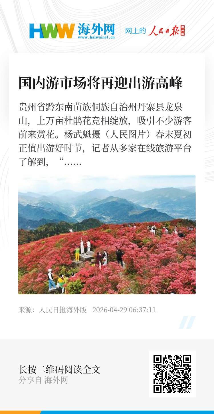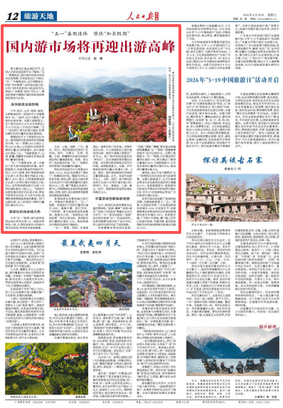 春末夏初正值出游好时节,记者从多家在线旅游平台了解到,“五一”假期临近,国内游市场预计将迎来出游高峰,并将呈现出以下特征:“五一”与春假连休,出行周期延长,形成“加长假期”;目的地全域火热,从热门城市到县域小城全面开花;游客从“去哪里”转向“玩什么”,满足松弛感与情绪价值的体验型深度游逐渐成为主流。