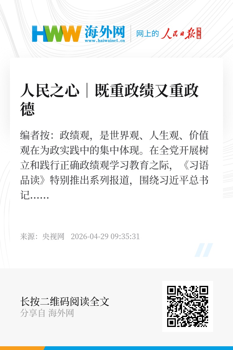 编者按:政绩观,是世界观、人生观、价值观在为政实践中的集中体现。在全党开展树立和践行正确政绩观学习教育之际,央视网《习语品读》特别推出系列报道,围绕习近平总书记关于树立和践行正确政绩观的重要论述,与您一起学习正确政绩观的丰富内涵与实践要求。